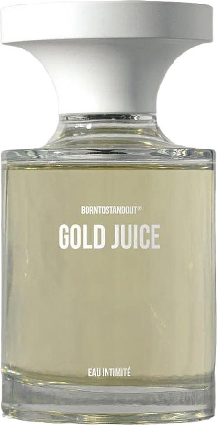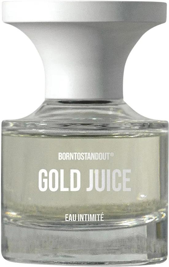 Borntostandout Gold Juice — это золотой парфюм из новой коллекции Eau Intimite, который невозможно контролировать! Его благоухание, словно сладкое столкновение экзотических фруктов манго и дуриана, создающее вкусный, странный и совершенно дикий беспорядок.