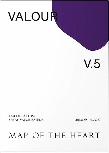 Map Of The Heart V 5 Valour — аромат самоотверженной храбрости, одерживающей победу. Украшенное горьковато-сладкими черными фруктами, его темное сердце из соленой лакрицы, фиалки и фиолетовых роз раскрывается, чтобы вознестись радостными нотами бобов тонка, утопленных в чернилах, повествующих сказки.