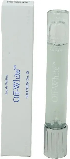 OFF-WHITE Solution No.10 — это аромат, который призван наполнить вашу жизнь впечатлениями. Лесной зеленый цвет представлен нотами розового перца, пачули, апельсинового цветка, кардамона и морской соли, создавая уникальный парфюм, который поможет вам двигаться вперед и быть там, где вы хотите.