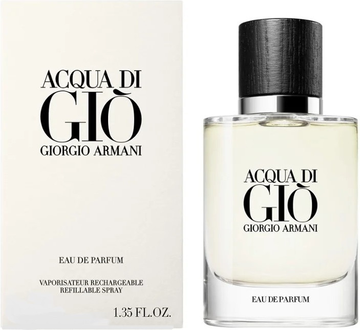 Giorgio Armani Acqua di Gio Eau de Parfum — парфюмерная композиция, которая содержит мощную морскую свежесть, где инновационные морские ноты смешиваются с натуральным зеленым мандарином, ароматическими эссенциями и древесно-минеральным оттенком.