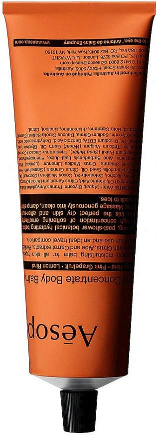 Увлажняющий состав охлаждающих растительных компонентов освежает и увлажняет кожу с помощью бальзама Rind Concentrate Body Balm от Aesop. Легкий крем дополняется освежающим цитрусовым ароматом, делает кожу мягкой, успокоенной и насыщенной.