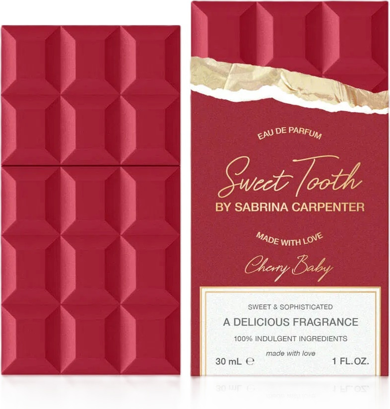 Парфюм Sabrina Carpenter Sweet Tooth Cherry Baby — это кокетливый и вызывающий зависимость аромат. Позвольте себе окунуться в сочный вихрь спелой вишни и шоколада, окруженный кокетливым туманом красного мака и нежного пиона.